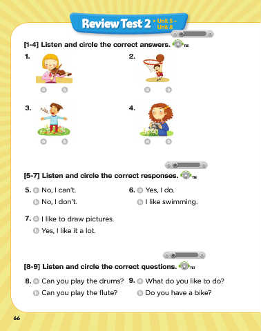[1-4] Listen and circle the correct answers. T55 [10-12] Listen and circle the correct pictures. T58