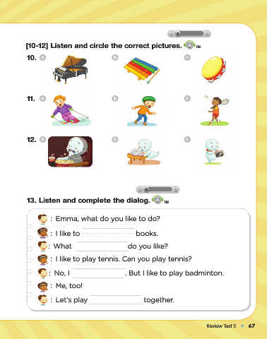 [8-9] Listen and circle the correct questions. T57 : : No, I can’t . But I like to play badminton.