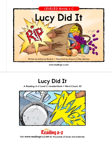 LEVELED BOOK • C Lucy Did It Written by Katherine Burdick • Illustrated by Roberta Collier-Morales www.readinga-z.com Lucy Did It A Reading A–Z Level C Leveled Book • Word Count: 52 Visit www.readinga-z.com for thousands of books and materials.