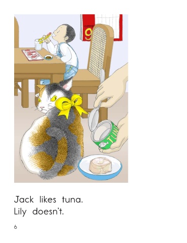 Jack likes beef. Jack likes tuna. Lily doesn’t. Lily doesn’t. Jack and Lily’s Favorite Food • Level C 5 6