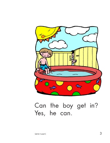 Can the boy get in? Can the girl get in? Yes, he can. Yes, she can. 3 4 Get In • Level C