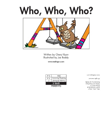 www.readinga-z.com Fountas & Pinnell Reading Recovery www.readinga-z.com All rights reserved. Illustrated by Joe Boddy Written by Cheryl Ryan © Learning A–Z Level C Leveled Book Who, Who, Who?
