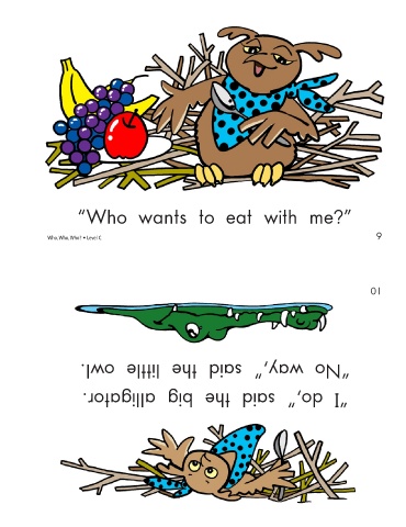 “Who wants to eat with me?” 9 Who, Who, Who? • Level C “I do,” said the big alligator. “No way,” said the little owl. 10