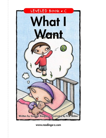 What I Want LEVELED BOOK • C What I A Reading A–Z Level C Leveled Book Word Count: 49 Want Written by Gawain Douglas • Illustrated by Erik Weber Visit www.readinga-z.com www.readinga-z.com for thousands of books and materials.