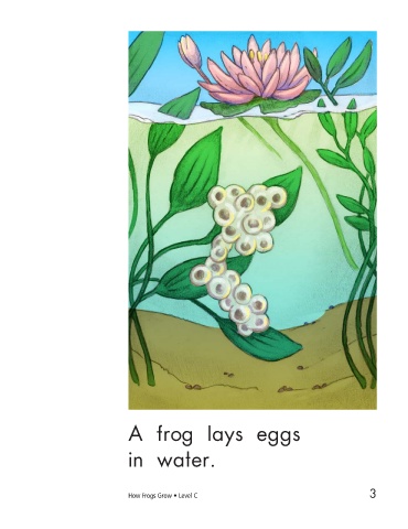 A frog lays eggs Tadpoles come out in water. of the eggs. 3 4 How Frogs Grow • Level C