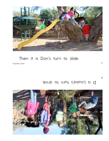 Then it is Don’s turn to slide. Taking Turns • Level C It is Louisa’s turn to drink. 7 8
