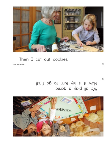 Then I cut out cookies. Taking Turns • Level C Now it is my turn to go first! We all play a game. 11 12