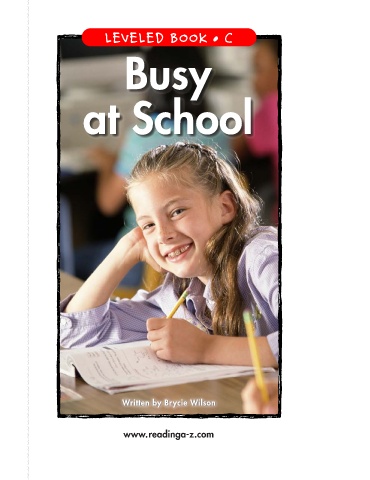 Busy at School LEVELED BOOK • C A Reading A–Z Level C Leveled Book Busy Word Count: 48 at School Written by Brycie Wilson Visit www.readinga-z.com www.readinga-z.com for thousands of books and materials.