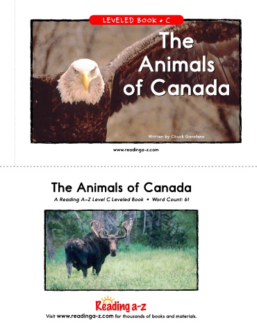 LEVELED BOOK • C The The Animals Animals of Canada of Canada Written by Chuck Garofano www.readinga-z.com The Animals of Canada A Reading A–Z Level C Leveled Book • Word Count: 61 Visit www.readinga-z.com for thousands of books and materials.
