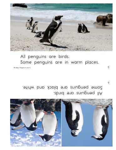 All penguins are birds. Some penguins are in warm places. All About Penguins • Level C Some penguins are black and white. All penguins are birds. 5 6