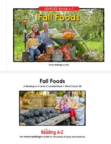 LEVELED BOOK • C Fall Foods Written by Harriet Rosenbloom www.readinga-z.com Fall Foods A Reading A–Z Level C Leveled Book • Word Count: 56 Visit www.readinga-z.com for thousands of books and materials.