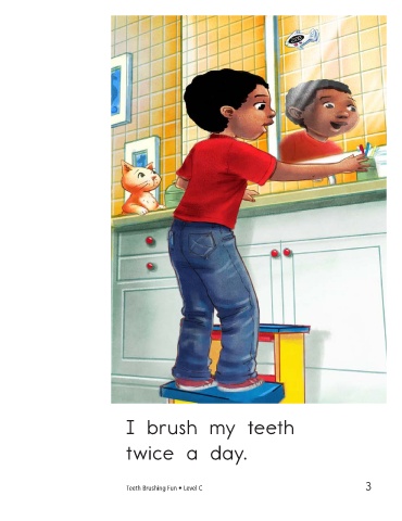 I brush my teeth I brush my teeth twice a day. with toothpaste. Teeth Brushing Fun • Level C 3 4