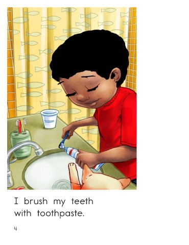 I brush my teeth I brush my teeth twice a day. with toothpaste. Teeth Brushing Fun • Level C 3 4