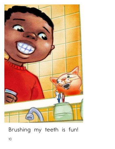 I brush my teeth on the bottom. Brushing my teeth is fun! Teeth Brushing Fun • Level C 9 10