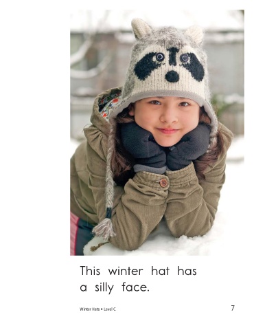 This winter hat has This winter hat has a silly face. furry earflaps. Winter Hats • Level C 7 8