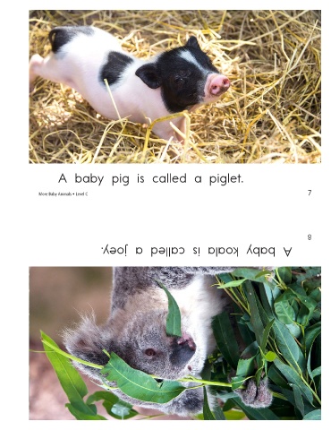 A baby pig is called a piglet. More Baby Animals • Level C A baby koala is called a joey. 7 8