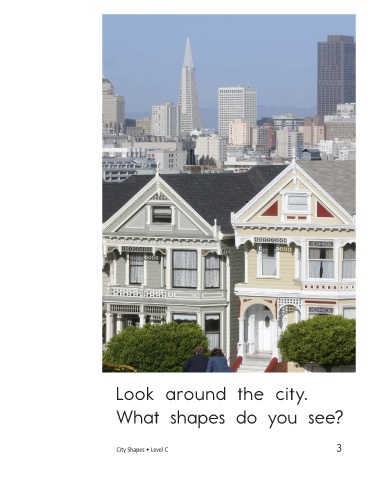 Look around the city. What shapes do you see? Here you see an oval. City Shapes • Level C 3 4