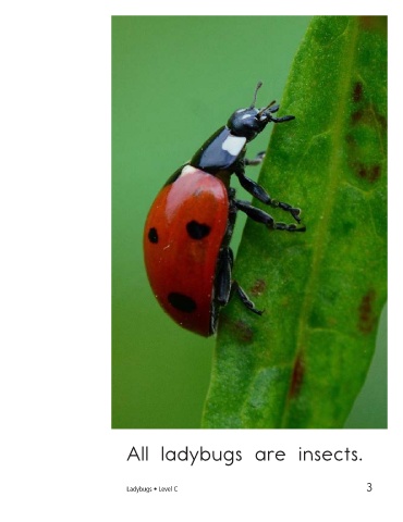 Some ladybugs are red. Some ladybugs All ladybugs are insects. are yellow. Ladybugs • Level C 3 4