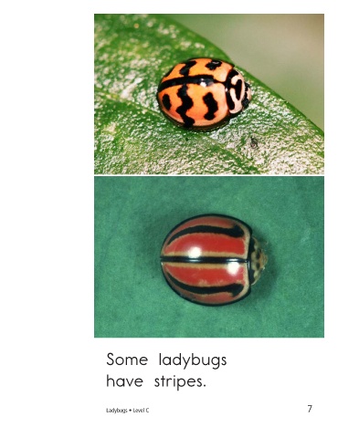 Some ladybugs Some ladybugs have stripes. have just one color. Ladybugs • Level C 7 8