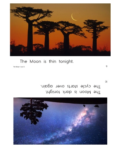 The Moon is thin tonight. The Moon • Level C The cycle starts over again. The Moon is dark tonight. 9 10