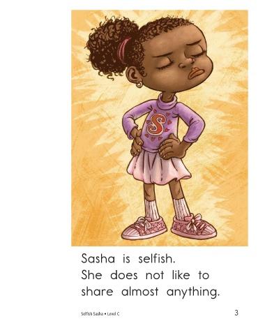 Sasha is selfish. She does not like to Sasha does not share share almost anything. her pencils. Selfish Sasha • Level C 3 4