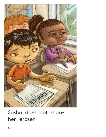 Sasha does not share Sasha does not share her toys. her eraser. Selfish Sasha • Level C 5 6