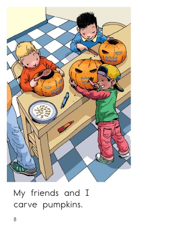 My friends and I Then, we bake a pie. carve pumpkins. Fall Fun • Level C 7 8