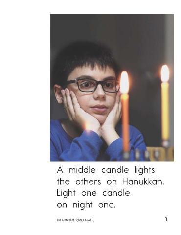 A middle candle lights the others on Hanukkah. Light one candle Light two candles on night one. on night two. The Festival of Lights • Level C 3 4