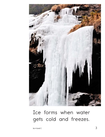 Ice forms when water Ice can form gets cold and freezes. on a wet house. Ice • Level C 3 4
