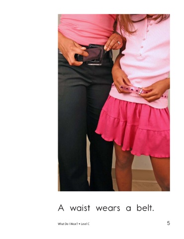 A waist wears a belt. A finger wears a ring. What Do I Wear? • Level C 5 6