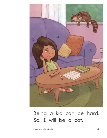 Being a kid can be hard. So, I will be a cat. I nap like a cat. I Want to Be a Cat • Level C 3 4