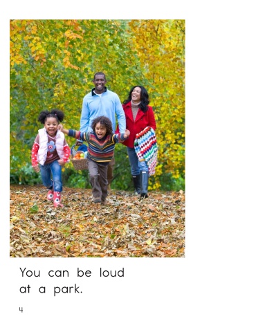 You should be quiet in some places. You can be loud You can be loud in other places. at a park. Quiet or Loud? • Level C 3 4