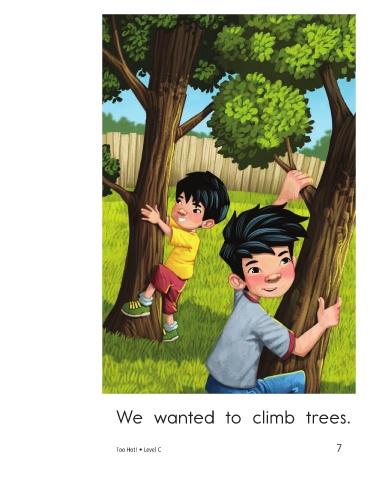 It was too hot outside We wanted to climb trees. to climb. Too Hot! • Level C 7 8