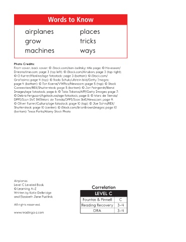 www.readinga-z.com Airplanes
