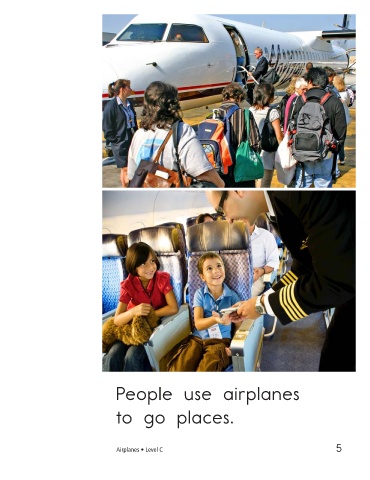 People use airplanes People use airplanes to go places. to put out fires. Airplanes • Level C 5 6