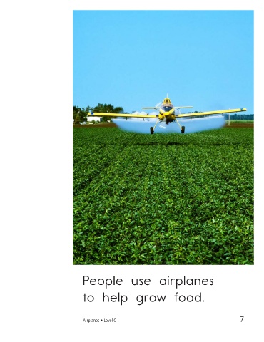 People use airplanes People use airplanes to help grow food. to do tricks. Airplanes • Level C 7 8