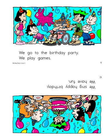 We go to the birthday party. We play games. Birthday Party • Level C We have fun. We sing happy birthday. 9 10