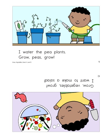 I water the pea plants. Grow, peas, grow! Grow, Vegetables, Grow! • Level D I want to make a salad! Grow, vegetables, grow! 9 10