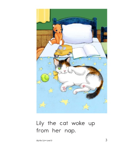 She jumped down Lily the cat woke up from the bed. from her nap. She saw a door. Lily the Cat • Level D 3 4