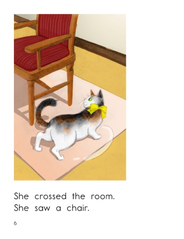 She walked through the door. She crossed the room. She saw a room. She saw a chair. Lily the Cat • Level D 5 6