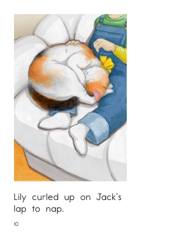 She jumped up on the couch. Lily curled up on Jack’s She saw Jack’s lap. lap to nap. Lily the Cat • Level D 9 10