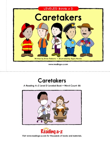 LEVELED BOOK • D Caretakers Written by Brian Roberts • Illustrated by Signe Nordin www.readinga-z.com Caretakers A Reading A–Z Level D Leveled Book • Word Count: 86 Visit www.readinga-z.com for thousands of books and materials.