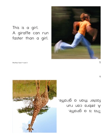This is a girl. A giraffe can run faster than a girl. Who Runs Faster? • Level D 5 6 faster than a giraffe. A zebra can run This is a giraffe.