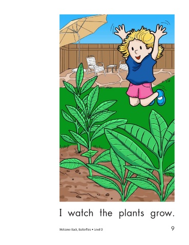My yard has the right plants now. I watch the plants grow. Welcome back, butterflies! 9 10 Welcome Back, Butterflies • Level D