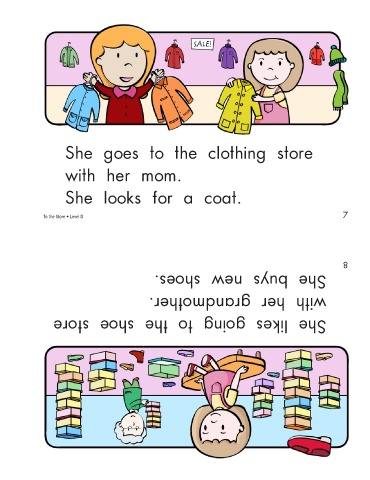 She goes to the clothing store with her mom. She looks for a coat. 7 To the Store • Level D She buys new shoes. with her grandmother. She likes going to the shoe store 8