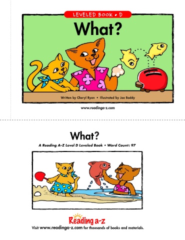 LEVELED BOOK • D What Written by Cheryl Ryan • Illustrated by Joe Boddy www.readinga-z.com What A Reading A–Z Level D Leveled Book • Word Count: 97 Visit www.readinga-z.com for thousands of books and materials.