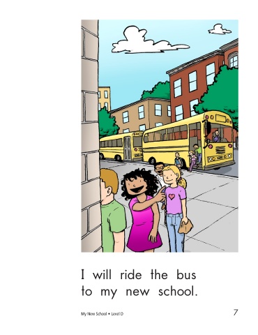 I will ride the bus I am at preschool to my new school. in the morning. 7 8 My New School • Level D