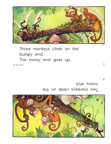 Three monkeys climb on the bumpy end. The mossy end goes up. Sky High • Level D mossy end. Two monkeys climb on the 7 8