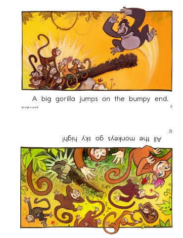A big gorilla jumps on the bumpy end. Sky High • Level D All the monkeys go sky high! 11 12