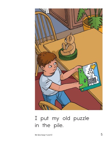 I put my old puzzle I put my old toy in the pile. in the pile. We Give Away • Level D 5 6
